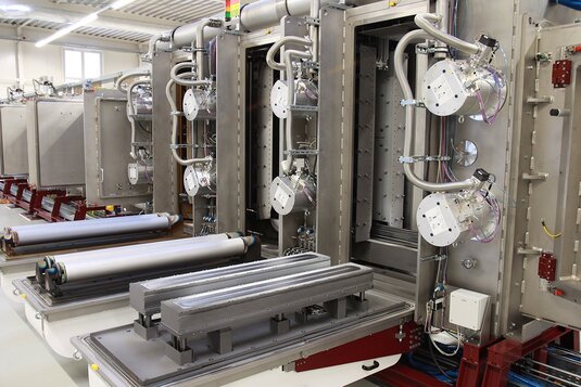 Die FHR.Line.1200-V ist eine vertikale Inline-Anlage mit Eingangsschleuse, Prozessbereich und Ausgangsschleuse sowie einem Carrier-Rückführsystem. Die riesigen Carrier (Substrathalter), in die die Rohre eingelegt werden, beinhalten eine Vorrichtung, die alle Rohre kontinuierlich rotieren lässt und somit eine gleichmäßige Beschichtung von allen Seiten ermöglicht. Im eigentlichen Prozessbereich werden Rohr- und Planartargets verwendet. Für einen einfachen Wechsel der 1200 mm großen Targets werden die Flansche mit den Sputterquellen nach vorne aufgeklappt.