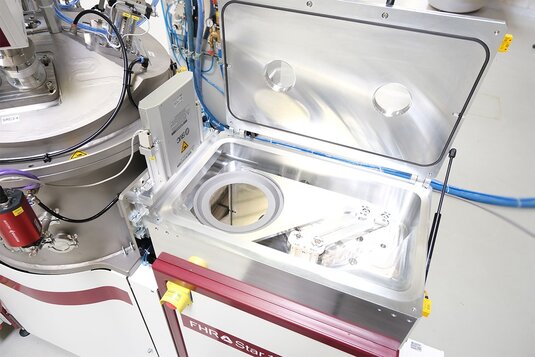 Die FHR.Star.100-PentaCo besteht aus einer kleinen Einzelsubstratschleuse mit eingebautem Roboterarm zur Beladung der benachbarten Prozesskammer unter Vakuum. In der Prozesskammer liegt das Substrat auf einem Drehteller mit eingebautem Strahlungsheizer und zuschaltbarem HF- und DC-Bias. Im Kammerdeckel sind fünf Positionen für Sputterquellen angeordnet, so dass in der Anlage ohne Wartungsarbeiten eine entsprechend große Anzahl an Targetmaterialien verfügbar ist. Für Wartungszwecke wird der Prozesskammerdeckel pneumatisch geöffnet. Wie bei FHR-Anlagen üblich, verfügt auch diese Anlage über eine umfassende Automatisierung mit Zugriff auf alle Komponenten und über eine komfortable Rezeptsteuerung.